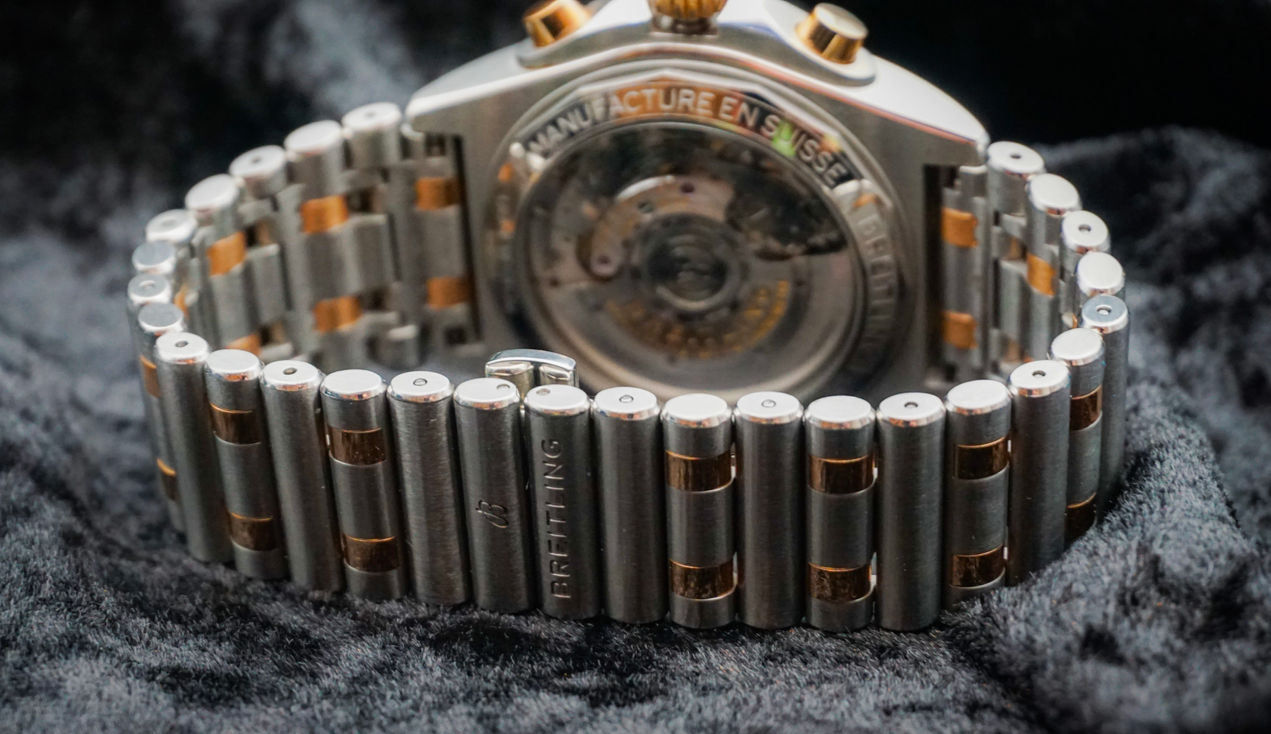 Powered by the in-house automatic Caliber B01, the movement offers COSC-certified chronometer precision and an impressive 70-hour power reserve. A trio of black subdials provides chronograph functionality while maintaining the symmetrical aesthetic. The dial is framed by a unidirectional rotating bezel in polished red gold.
